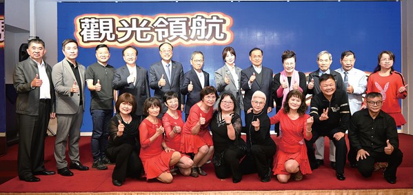 ▲臺灣港務公司董事長周永暉(後排左5)與台灣觀光曁商圈聯盟總會、貴賓,以及表演團體合影。