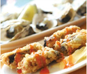陳家五十幾年來以剝蚵賣蚵為業,安平地區的蚵仔煎所使用的蚵仔,幾乎被陳家一手包辦,在第三代兩兄弟尚未接下家業前,一直都由母親陳秀月負責蚵仔生意。正因為掌握材料新鮮度,香酥蚵捲自然成為招牌點心。金黃酥脆蚵捲是用豬肉、白韭菜、蔥、芹菜、魚漿,再加上新鮮的蚵仔包入豬網膜中,沾上蕃薯粉、油炸粉等六種粉調製的酥炸粉,入鍋油炸而成。