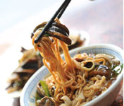 招牌菜乾炒鱔魚意麵,是道湯汁豐富的鮮味麵點,除了鱔魚份量十足,勾芡過的湯酸中帶甜,搭配意麵混合湯汁一齊入口,教人滿足。絕佳味道的關鍵在於用「五蔭醋」調味,以及師傅對火候的掌握,食材從下鍋到起鍋,時間得控制30秒之內,炒出來的鱔魚才會口感滑嫩且帶脆。除了乾炒,還有藥膳湯作法,鱔魚味道更顯滋補。