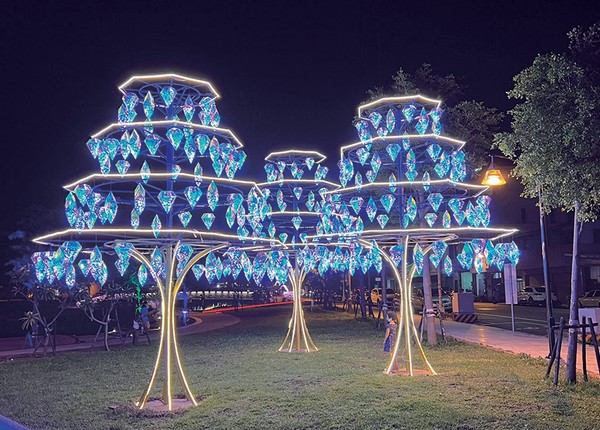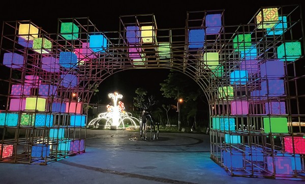 其他還有端午節應景的「立蛋」、「祈 福樹」、「沈浸式光廊」及利用水草佈成 的「螢光點點」,強調舊鹿港溪的自然生 態;另外充分運用水的倒影特性,讓整個 鹿港溪在節慶歡樂中帶點恬靜,用光影照 映出鹿港的歷史風華,還有街區節點的光 影妝點,讓鹿港愈夜愈美麗。
