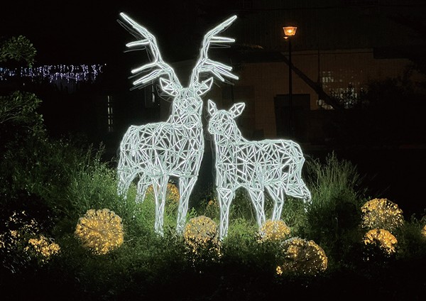 其中舊鹿港溪特別以光影藝術,呈現 鹿港母親之河的風華及歷史脈絡,在源頭 的開源廣場有代表「飲水思源」、「魚躍 龍門」的噴泉主題燈光,周邊搭配優雅恬 靜、草木扶疏的河岸,與環境融合佈置成 夢幻的點點星光,極度浪漫;也有代表鹿 港全盛時期的「鹿港飛帆」,呈現早期商 港的繁華,還有運用為保留樹木而留下的 河中島,裝置了「蓬萊仙鹿」及「鹿奔原 野」的梅花鹿光影藝術,呈現早年梅花鹿 奔馳的景像,也表達鹿仔港名稱的由來。