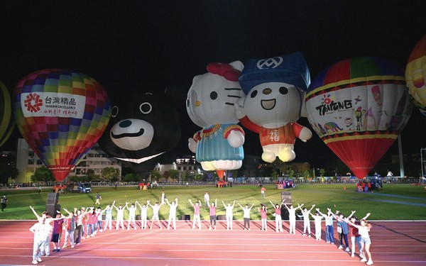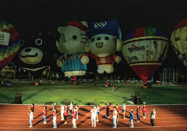 熱氣球光雕音樂會相隔3年再度回到臺 東縣立體育場,也是今年暑假讓所有球迷 熱烈期待的場次,首先由「志航基地空軍 娃娃」及「舞當叁Wazdope舞團」帶來暖場 「表演,接著由「零捌玖舞團」與「豐田國 中」帶來活力四射的舞蹈。接著超人氣的 Hello Kitty球、臺北熊讚球、福利熊球、臺 東球、曙光球、彩虹球及南瓜球共7顆熱 氣球,在現場民眾的歡呼聲中展開演出。