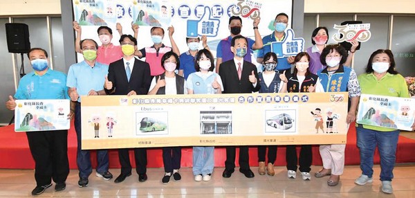 ▲彰化縣政府於7╱22在縣府中庭舉行「彰化縣長青幸福卡與統聯客運、國光客運簽署合作宣言記者會」。