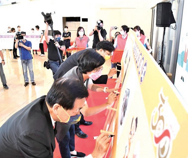 ▲彰化縣長王惠美與統聯汽車客運股份有限公司、國光汽車客運股份有限公司共同簽署合作宣言。
