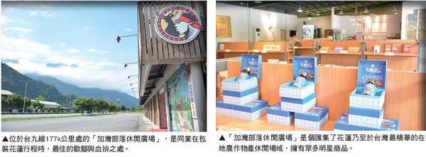 成立多年的「加灣部落休閒廣場」,最 初成立宗旨是希望為在地農作物產提 升附加價值,並帶動當地原住民族的就業 機會,因此休閒廣場中特別彙集了來自花 蓮特有的農作產品,舉凡麻糬、小米酒、 手工精油皂、烘焙咖啡、小農物產、靈芝 茶、靈芝咖啡等養生飲品,都是來自花蓮 甚至全台的精選農作品。
