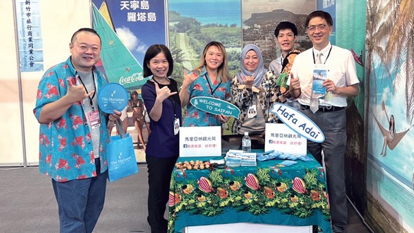 ▲(左3起)馬里亞納觀光局代表蔡璧如、馬來西亞觀光局副處 長娜伊瑪荳、帛琉觀光局台灣辦事處長雷均(左6),與貴賓合 影。