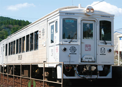 海幸山幸(うみさちやまさち)號觀光列車,源自於南九州日本神話故事,以潮嶽神社和青島神社為故事舞台背景的兩位神仙名字「山幸彥」、「海幸彥」為靈感所命名。車內共有兩節車廂,其中第1節車廂稱為「山幸(Yamasachi)」,第2 節車廂稱為「海幸(Umisachi)」,全部座位都需事先預約。車箱以當地宮崎縣獨一無二之杉樹木做為材料,外觀有如木造玩具列車一般,造型相當可愛,深受鐵道迷和兒童喜愛,內部裝潢呈現簡約風格,令人溫馨舒適。