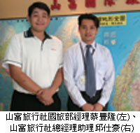 山富旅行社國旅部經理蔡豐隆表示,「關於大陸人士來台旅遊的操作方式,山富旅行社秉持不做低價團,以保有山富旅行社品質。而客群以商務、會議、展覽旅客居多,相對的,商務旅客要求的品質也會提高,在雙方的約制之下,走向中高價位導向。至於大陸旅客來台最愛的前三大景區,第一為墾丁、第二阿里山及日月潭、第三為太魯閣,目前一個月來台成行率約10團上下。」
