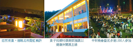 陳仲明強調,大型活動的舉行與尾牙、謝師宴、獎勵旅遊,俱樂部已有承接活動設計與team build規劃的經驗,如10/6舉行的「月圓人團圓,High翻中秋夜」晚會,就是俱樂部自家辦理的中秋專案,在沒有太多宣傳的情況下,卻吸引了1,300名以上遊客參加,除了美食佳餚,還邀請樂團、懷舊老歌演唱、煙火秀、佛朗民歌舞蹈、大獎摸彩,在賓主盡歡的實況中,也印證了貴子坑鄉村俱樂部在旅遊觀光上的投入和付出,「把每位客人的美好旅遊回憶當成自我事業經營。」他堅定的說著。