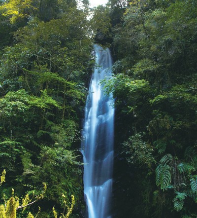 ▲戈霸瀑布,高低落差約50公尺,也是九寮溪的一大特色景點。