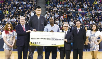 「2013年澳門威尼斯人國際群星籃球對抗賽」於5月1日在威尼斯人酒店的金光綜藝館舉行。比賽是由籃球巨星姚明領軍的上海大鯊魚隊迎戰加里‧佩頓(Gary Payton)為首的金光群星隊,最後由金光群星隊以74分比70分獲勝。該場比賽門票收益將全數捐贈,用以協助四川的震後救災工作。而在金沙中國按總門票收益以一隊一配對方式再作額外捐款下,一共捐贈澳門紅十字會澳門幣300萬元,並於開賽前由金沙中國有限公司總裁兼行政總裁愛德華‧卓思(Edward Tracy)向澳門紅十字會送交一張澳門幣三百萬元的支票。