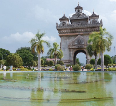 永珍地標之一的凱旋門於1969年建造完成,為法國政府慶祝寮國獨立所贈。凱旋門仿照巴黎凱旋門設計,但基座上典型的寮國寺廟雕刻以及上層之寶塔,都充滿濃厚的寮式風格,步行登上塔頂,可俯瞰整個永珍市區。