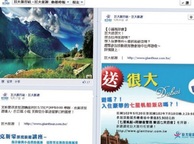 ▲巨大旅行社臉書按讚抽大獎活動。