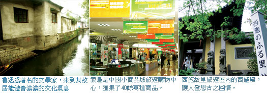近年來崛起並有中國好萊塢之稱的浙江橫店影視城,讓上蘇杭的產品有了新氣象;而今年首屆的荷花節,針對台灣旅遊市場重點推廣,不僅讓杭州西湖的行程有了新話題,更帶動西施故里~諸暨的曝光;浙江中部的義烏,是充滿活力的新興商貿城市,透過大型商場的展示,讓大陸旅遊的購物活動邁入另一個新境界。