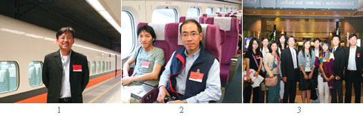 1.新台旅行社行銷部協理廖恭德。 2.新台旅行社企劃部經理倪伯盈(右)體驗高鐵商務艙。 3.新台旅行社行銷部協理廖恭德(右2)、新台旅行社行銷部企劃經理曹家維(右3)、新台旅行社行銷部經理林志遠(右7)及新台同仁們一同參與時速300公里的極速高鐵。 4.由新台旅行社領軍進行高鐵板橋—台中站半日試乘體驗。