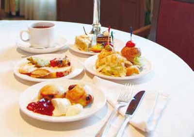 3.在國際餐廳可以享用到英式下午茶套餐,精緻的蛋糕、三明治、餅乾與水果搭配英式紅茶,伴著午後灑下的陽光,悠閒又愜意。