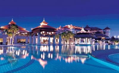 推薦1― 棕櫚島安娜塔拉水療度假酒店位於杜拜棕櫚島的東邊,風格融合泰國皇家園林、馬爾地夫水上屋的建築型態,完美融合海洋、沙灘、瀉湖、水上療養,休閒娛樂。在此,不僅是個休憩良所,也可稱為是個旅遊目地地。其中,位於度加村中央的偌大泳池,還不時有服務人員划著小舟,遞送小點心與飲品,旅客在房間陽台即可享受得到。