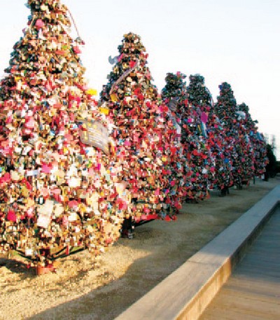 ▲首爾塔情人鎖牆─來自《星星的你》、《流星花園》、《RUNNING MAN》等取景