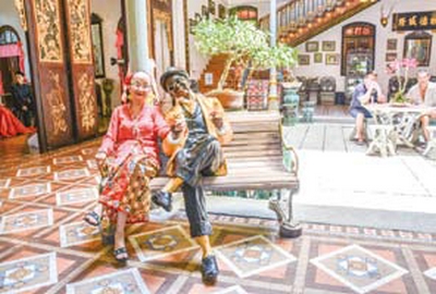 博物館內擁有許多娘惹的珍貴文物,包括一位坐在門口供人拍照留念娘惹婆婆,她身穿華麗的刺繡外衣與手工細活的串珠鞋,讓人恍如身在百年前的大戶廳堂前做客,感受昔日的絕代風華。