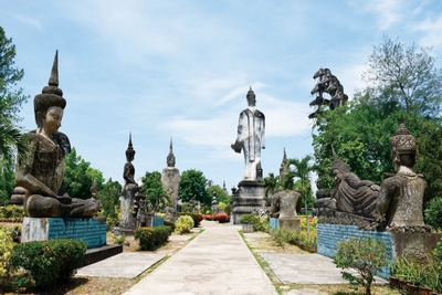 園區內有許多型態各異的巨大佛像雕塑,由一位寮國修行者打造。印度教與佛教的各式神祉與圖騰形象鮮明,兼具宗教與藝術的美感。雖然佛像雕塑建成時間僅數十年,卻熱帶氣候日曬雨淋,致使佛像斑駁如歷經數百年,透露出滄桑的氣息。