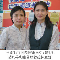 東南旅行社繼市場反應不俗的「頂泰風」後,5月分再推出直售價29,900元的高檔新品—「晶鑽泰國5日風華時代.貴族經典」,東南旅行社團體東南亞部泰普線林家慧表示,藉此搶攻頂端重遊客,同時將「頂泰風」的餐食、住宿與SPA部分作提升,採用一般團體較少使用的餐廳、曼谷半島酒店及Health Land SPA,展現區隔市場的企圖心。