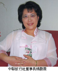 中聯旅行社董事長楊馥霞指出,「我們目前以做大陸全線與菲律賓同業為主要發展範圍,就大陸線而言,首推『神州行』系列產品最受好評。其中,『五星版昆大麗8日』住宿全程使用五星級飯店,再加送大理天龍八部影視城、正統麗江之麗水金沙秀等等特色行程;『九寨溝+黃龍+張家界藏羌仙境11日』則以環線方式暢遊都江堰、黃龍、九寨溝等特色景點,再拉車至張家界第一國家公園,同時造訪世界自然遺產—袁家界風景區,登上全球最高戶外電梯—百龍電梯,將世界美景一覽無遺。」