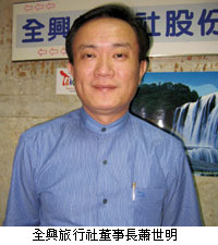 全興旅行社董事長蕭世明表示,「全興旅行社主要經營大陸線特殊路線行程,可依據同業的需求個別行程,而行程規劃則是以一般團體行程較少包裝的特殊自然景觀為主,如『武當仙境.神秘鍾祥.雙世界文化遺產7日遊』、『廣東+海南島全覽12天』或是山東—北京—承德等較長天數的行程。」蕭世明表示,由於行程內容較偏向純粹的自然景觀遊覽,所以客群也都以中高年齡的消費者佔多數,由於和當地Local關係密切,因此在餐食以及住宿上也都能夠穩定配合,絕大多數行程費用都在3萬元以下,可說是物美價廉的精采行程。