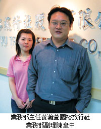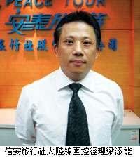 信安旅行社大陸線團控經理梁添能指出,「信安旅行社從日本、東南亞、島嶼等行程皆經營不錯,繼而加入中國市場,積極與各大航空公司合作推出相關配套行程,以符合旅客需求。目前已與遠東航空、澳門航空、香港航空、四川航空等合作,就遠東航空來說,上海、北京、瀋陽、大連及杭州等航點,都納入產品行程之中,積極進行銷售;而香港航空除去年昆明、桂林等航點,今年再增加長沙、天津及廈門等,為主力銷售業者之一;最火紅話題的青藏鐵路,讓四川航空從去年的成都包機,現在已變成定期航班,目前已規劃『青藏鐵路8日遊』並收錄2007年全世界最熱門的旅遊線路,青藏鐵路拉薩/西寧段;另外一直熱賣的九寨溝產品,信安已取得四川航空固定機位,並有最高檔住宿即保證入住『九寨溝天堂洲際酒店』。(撰文>呂雪芳 攝影>王相涵)