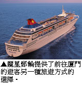 同時,麗星郵輪也相當貼心地提供了多元化的廈門岸上觀光,首先是搭乘渡輪至鼓浪嶼、再搭巴士遊覽至菽庄花園,遊園後再進行商業街的自由購物,隨後搭郵輪至廈門,在南普陀寺享用著名的特色素菜午餐,並在千年古寺南普陀寺進香遊覽,隨後遊覽廈門最美的海濱風光,參觀廈門最新景點中國國際園博會會址~園博園。另外,針對「泉州」行程,先乘車至泉州天后宮,遊覽歷史最久、規模最大的天后宮,在華僑大廈享用午餐,再前往泉州中心涂門街自由活動,可在府文廟廣場參觀福建最大的孔廟~府文廟和閩南特色民居,也可參觀中國最古老的清淨寺和香客最多的關岳廟,另可在涂門街、中山街、旅遊文化街購物,隨後遊覽著名的開元寺、東西塔、古船展覽館、佛教博物館等。其他的行程還有「湄洲島」媽祖廟、「漳州」慈濟宮、台灣街等供旅客選擇。