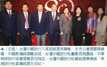 台灣中國旅行社董事長周慶雄表示,當初陳甫光先生創立上海商業儲蓄銀行後,於上海商業銀行內部創立旅行部,後於1927年獨立出來成為中國旅行社,1949年因為政局變遷,遷至台灣,因而在原名中國旅行社前冠上台灣,而成為現在的「台灣中國旅行社」,周慶雄強調,台灣中國旅行社」將不斷創新服務,帶給旅客更好的旅遊環境。