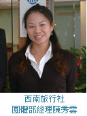 西南旅行社團體部經理陳秀雲表示,大陸線張家界在市場上屬於長賣的產品,加入一些獨家新元素之後,玩法更多更豐富,建議同業可以合力操作。「奇境絕色—長沙張家界、袁家界+鳳凰古城飛越天門山溫泉8天」全程無自費、無攝影、無購物,最受消費者青睞。除了張家界的既有景點外,值得一提的是,市場獨家入住富有湘西風情的鳳凰古城—江天渡假村,讓貴賓體驗白天與夜晚截然不同的鳳凰古城。冬天也貼心推出泡湯養身—入住江埡溫泉度假村,張家界保證入住五星級天子大飯店,安排十四大風味餐,絕對給消費者優質滿足的內容。此外西南更用心規劃特殊景點A如韶山毛澤東故居、天門山…等,並結合各地如:江西、貴陽、桂林、九寨溝….等,多元化的產品,超值的內容,歡迎同業洽詢。電話:(02)6600-7988(撰文>黃宣凱 攝影>黃雲霖)