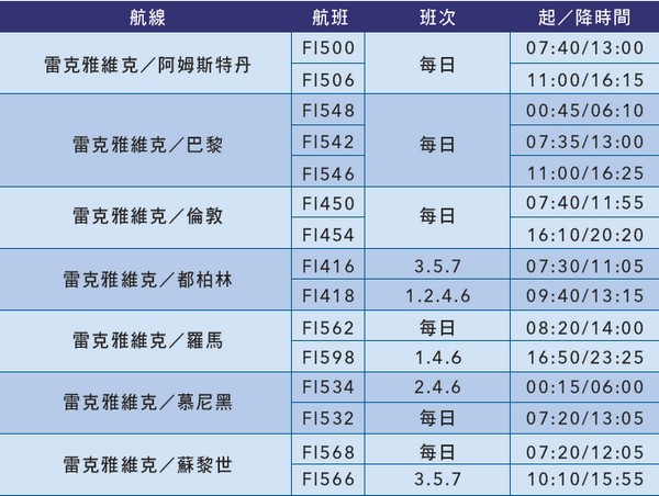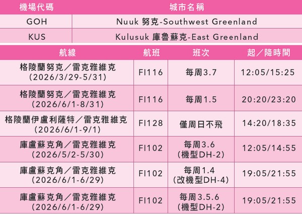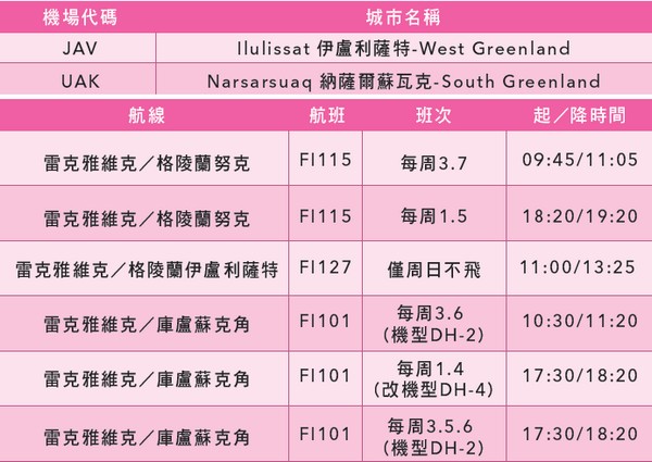 冰島航空自KEF( 雷克雅維克) 直飛格陵蘭4 個城市