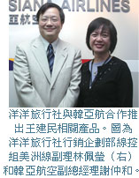 為滿足球迷們想望,洋洋旅行社繼去年小試身手推出「王建民加油團」之後,今年再度推出「紐約洋基王建民加油團10日」產品,洋洋旅行社行銷企劃部線控組美洲線副理林佩瑩表示,5月起連續5個月,洋洋都會推出加油團產品,考慮建仔「打一休四」的發球安排,有別市場僅安排觀賞兩場球的同類產品,洋洋特別安排觀賞5場球賽,藉此提升球迷們看到建仔發球英姿的機率。林佩瑩並指出,透過該行程,旅客不僅能為建仔打氣,更可利用悠閒時間根據各人喜好與興趣,為自己規劃一趟紐約深度之旅,而洋洋特別安排延伸前往距紐約不遠的華盛頓。為讓同業、旅客進一步F解行程特色與內容,4月起,洋洋將在台北、台中、台南與高雄舉辦說明會。除出加油團產品之外,深耕美東市場的洋洋再次推出「曼哈頓狂想曲10天」產品,該產品是市場唯一入住曼哈頓的行程,林佩瑩說,「正因入住曼哈頓市中心,能讓旅客感受、貼近曼哈頓繁華風情,且方面旅客前往周邊旅遊,因此推出後廣受好評。」(撰文>曾瑋琪 攝影>呂雪芳)