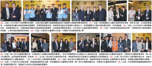 ▲(左起)中國旅行社協會會長張立軍、 海峽兩岸旅遊交流協會台北辦事處主任劉克智、海峽兩岸旅遊交流協會執行會長杜江、台灣海峽兩岸觀光旅遊協會會長謝謂君、副會長張錫聰、旅行公會總會理事長姚大光。