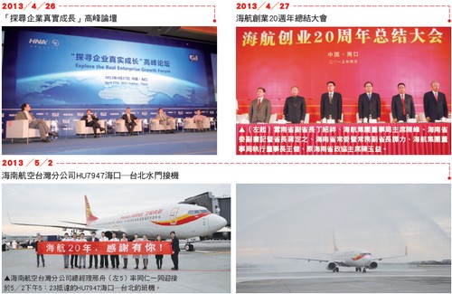 而在兩岸航線的部分,海航會盡最大的力量爭取加密班次、增航點。陳文理表示,中國境內的航空需求大,中國民航有先天優勢利於發展,走過20年,海航不斷堅持創新,在戰略上高瞻遠矚、管理上創新求效率。在航空業競爭大、成本居高不下的時代,海航也將持續尋求新商業模式,例如全商務客機、低成本航空的嘗試。而且海航產業多元發展,可以航空為主,搭配酒店、金融、旅遊的產品鍊條,都是海航獨一無二的資源。