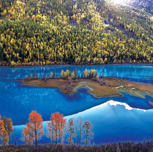 喀納斯湖深藏在千嶺萬壑的阿爾泰山間,屬於喀納斯河流域範圍,它是中國最深的高山淡水湖泊,因「湖怪」、「雲海佛光」、「變色湖」「枯木長堤」4大奇觀而蜚聲中外。青山白雲、雪嶺草原渾然一體,湖光山色美不勝收。