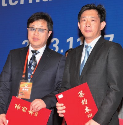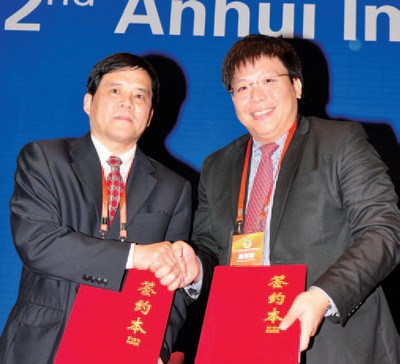 ▲(左起)淮南市旅遊局局長陳岩、雄獅集團副總經理黃國瑜。