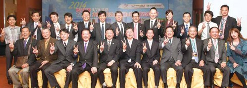 光產業聯盟理事長張福生、高雄市觀光協會理事長黃金祥、台灣海峽兩岸觀光旅遊協會北京辦事處主任楊瑞宗、高雄市觀光局局長許傳盛、海峽兩岸旅遊交流協會秘書林清輝、屏東縣觀光協會理事長王樹嘉、統茂旅館集團執行董事謝銘峰、文賓大飯店董事長周文彬、逸歡旅遊集團董事長駱炫宏。(後排左起)大東亞旅遊集團經理黎倫、屏東牡丹風情溫泉會館經理蘇秀仁、高雄市觀光局科員李慶璿、萬旅遊旅行社董事長林重信、高雄市旅行商業同業公會理事康維民、台灣海峽兩岸觀光旅遊協會北京辦事處組長江志端、維格餅家營業部副總經理王建民、漢來大飯店企劃行銷部業務副理柯宏君、陽光大飯店總經理洪進華、晶鼎旺國際企業有限公司業務部經理李純萩、昇恆昌業務經理奚裕翔、屏東牡丹風情溫泉會館協理葉爵銘、寒軒國際大飯店業務主任陳又嘉。