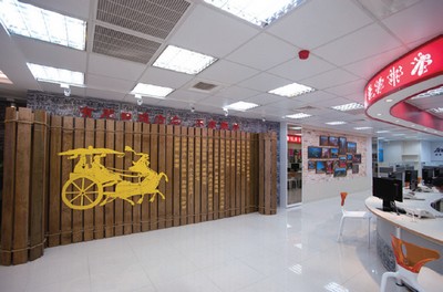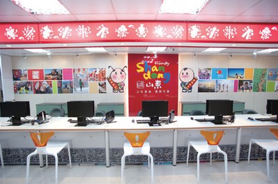 ★在銷售服務台的背景以「好客山東」為主視覺,並且搭配山東過大年、濱海城市風情等照片,展現山東旅遊的多樣性。