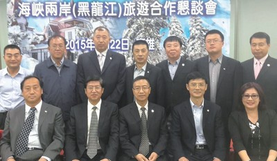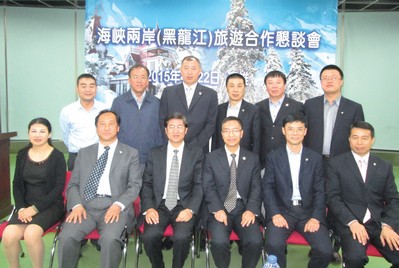 ▲黑龍江省各地旅遊局代表及中國海峽旅行社董事長許淑玲(前排右1)合影。