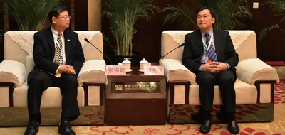▲海峽兩岸旅遊交流協會秘書長劉克智(右)、台灣海峽兩岸觀光旅遊協會副會長張錫聰舉辦會談。