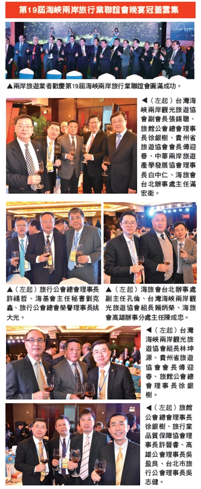 而今年,由海峽兩岸旅遊交流協會、台 灣海峽兩岸觀光旅遊協會指導,中國旅行 社協會、旅行業品質保障協會、旅行公會 總會主辦,廣西旅遊協會承辦的第19屆海 峽兩岸旅行業聯誼會在廣西南寧召開。聯 誼會以「創新創優、提質增效」為主題, 吸引了兩岸旅遊業界代表800餘人齊聚一 堂。
