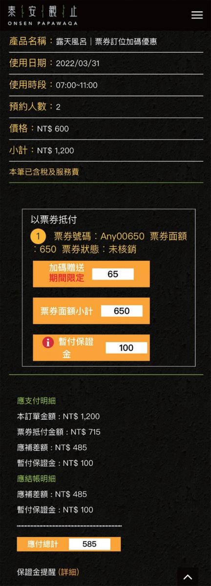 台中旅展即將在4╱22~4╱25登 場,泰安觀止也推出線下、線上 (4╱18~4╱29)旅展並行活動,同時 發行「優惠聯票」,持聯票可線上訂泰 安觀止各種房型、湯屋、露天風呂、餐 廳,及食、宿、遊、購、行。持票券線 上預訂,另享加碼面額10%至400元不 等,讓旅客大呼賺到了。