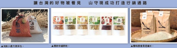 值得一提的是, 透過「山守現」的標章制度,能讓通過審查的農村商品使用該 標章,並由「台灣山守現農村再生發展協 進會」的協助之下,讓農民擺脫過去單一 社區單打獨鬥模式,持續帶動農村產業發 展,以共同品牌概念來經營,讓山守現標 章發光發亮。