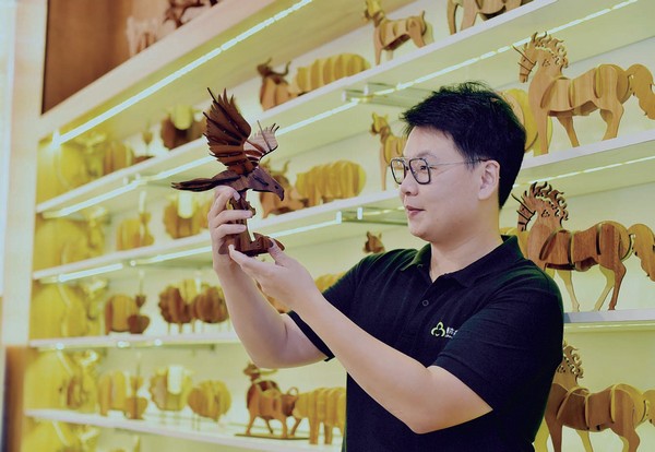 不僅如此,強調「動手做」的概念,卷 木森活館將木皮板透過電腦繪製出圖、雷射 切割,作成一個個可拼製的材料,讓親子一 起動手作。尤其在電子產品盛行的年代,孩 童接觸3C的年紀越來越小,透過充滿趣味的 手作DIY,可以讓小朋友們暫時放下手機與 平板,在敲敲打打與組裝之中,僅需要10幾 分鐘,便可以製作出小車、存錢筒、動物, 甚至會動的機器人,讓他們獲得樂趣與成就 感。