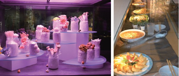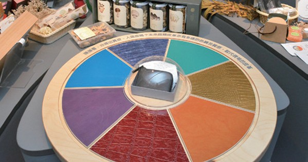 ▲面對永續發展的趨勢,產學館也羅列出運用菇類可以研發出減塑、低碳的產品。