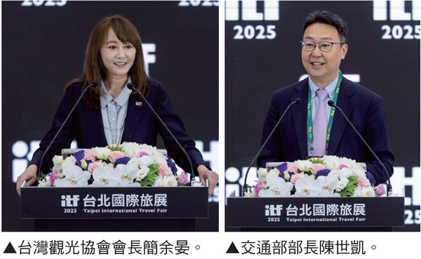 台灣觀光協會會長簡余晏表示,今 年台北國際旅展是台灣觀光產業的一場 大轉型運動。航空公司、旅行社的攤位 擴大且更具美學,也強調品牌服務與設 計。國旅面貌與以往不同,不再只是換 個地方住一晚,而是真正走入在地深入 歷史、高品質。交通部部長陳世凱指 出,在經濟表現穩健下,觀光產值已達 8,000多億元。未來將透過相關政策與 計畫,攜手業界朝總統設定的「產值破 兆」目標邁進。他鼓勵民眾把握國際旅 展機會,找到最適合自己的旅遊行程; 政府也將持續支持觀光產業發展。