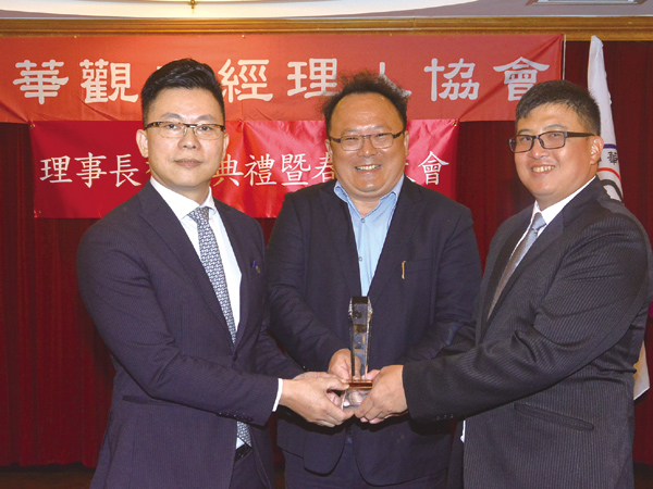 ▲在中華觀光經理人協會副理事長丘彪(中)見證下,