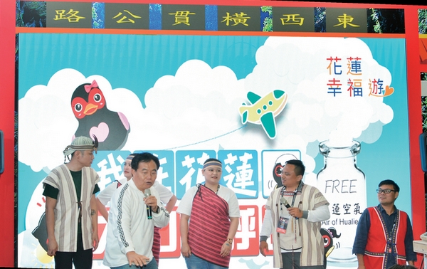 ▲山月村村長鄭明岡與同仁在台北國際旅展設攤並宣傳。