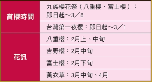 隨著櫻花祭的登場,已經吸引賞花人潮湧入,絲毫未受到疫情的影響,值得一提的是,即日起園區開放到晚上20:00,遊客可以從白天玩到晚上,是應景的賞花賞夜櫻行程。此外,4/5前九族花季特惠價只要650元,再送日月潭纜車搭乘。同時,即日起到3/1有開放夜間賞櫻,並推午後票更便宜,2點以後入園只要550元,讓旅客一路玩到晚上。